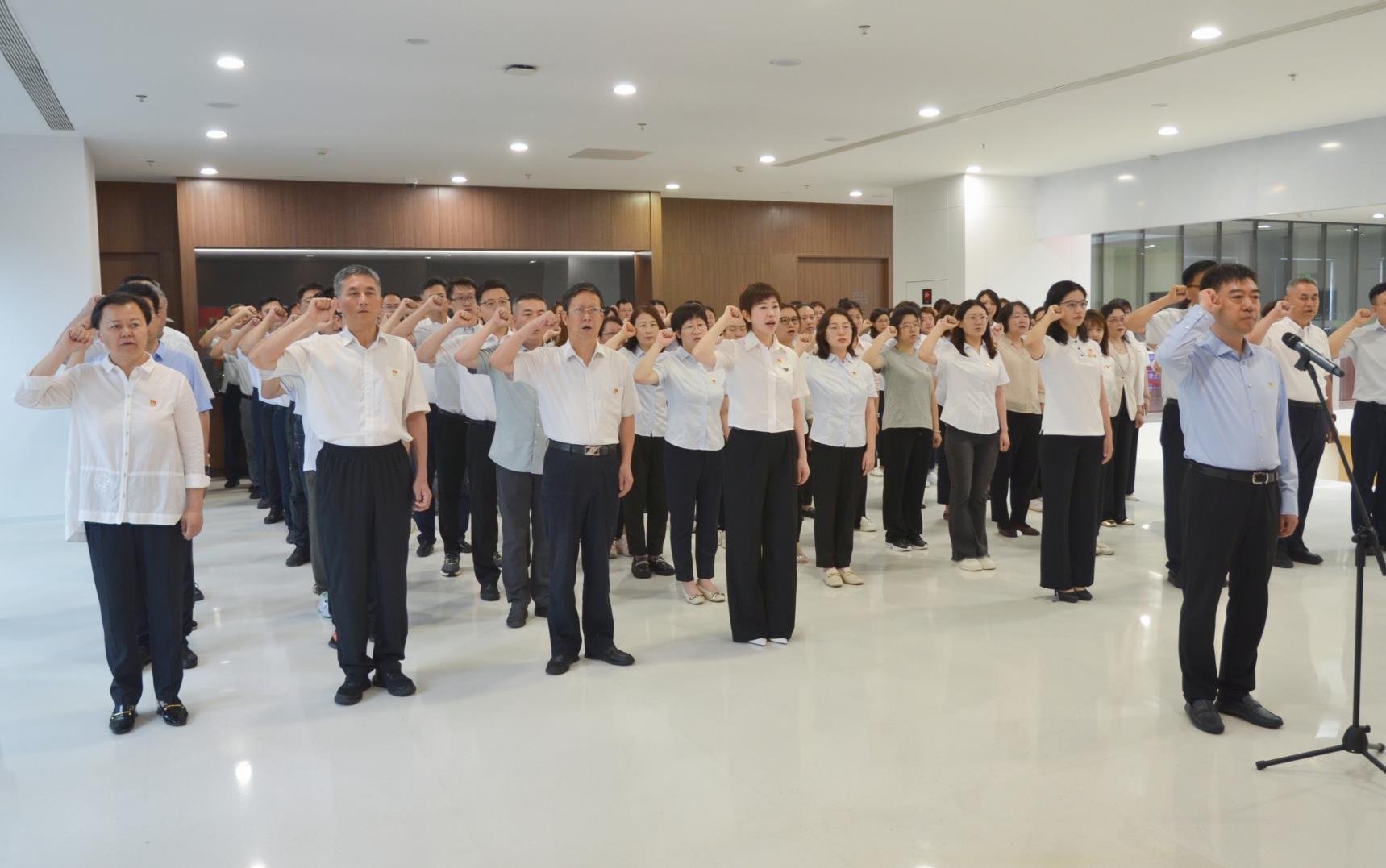 为热烈庆祝中国共产党成立103周年,深化党纪学习教育,在“七一”到来之际,集团各级党组织隆重举行党员集体宣誓活动,2000余名党员重温誓词、庄严宣誓。在集团本部宣誓现场,集团党委书记赵勇领誓,党委副书记、工会主席唐铁军主持,集团领导班子成员参加活动。